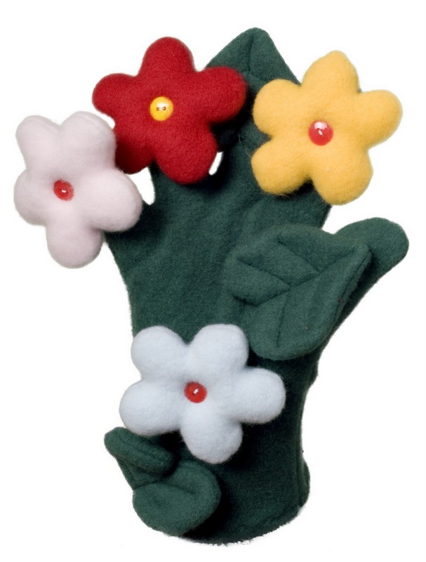 Material: Die Handpuppen werden aus gewirktem, farbigem Polarstoff hergestellt.